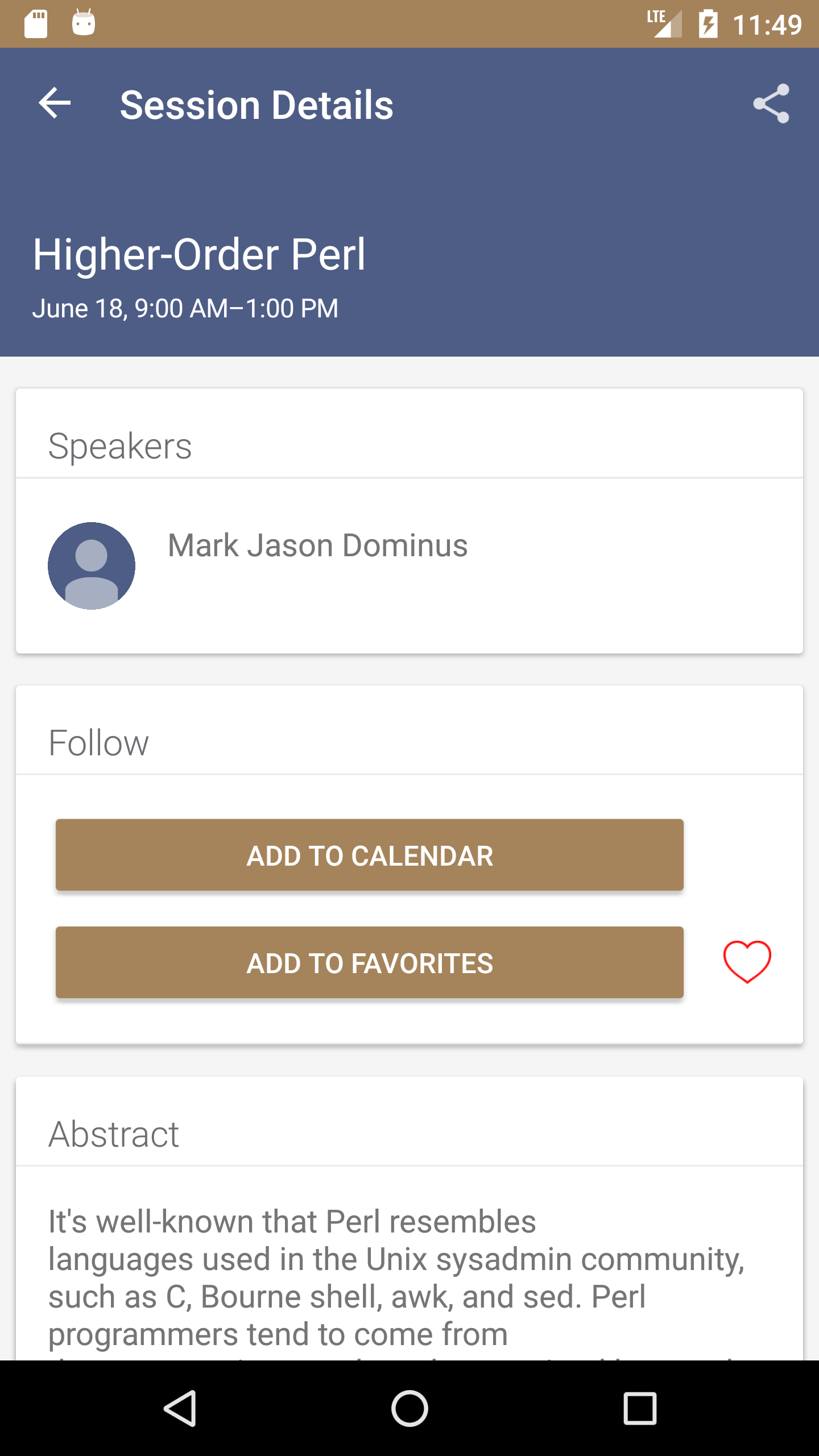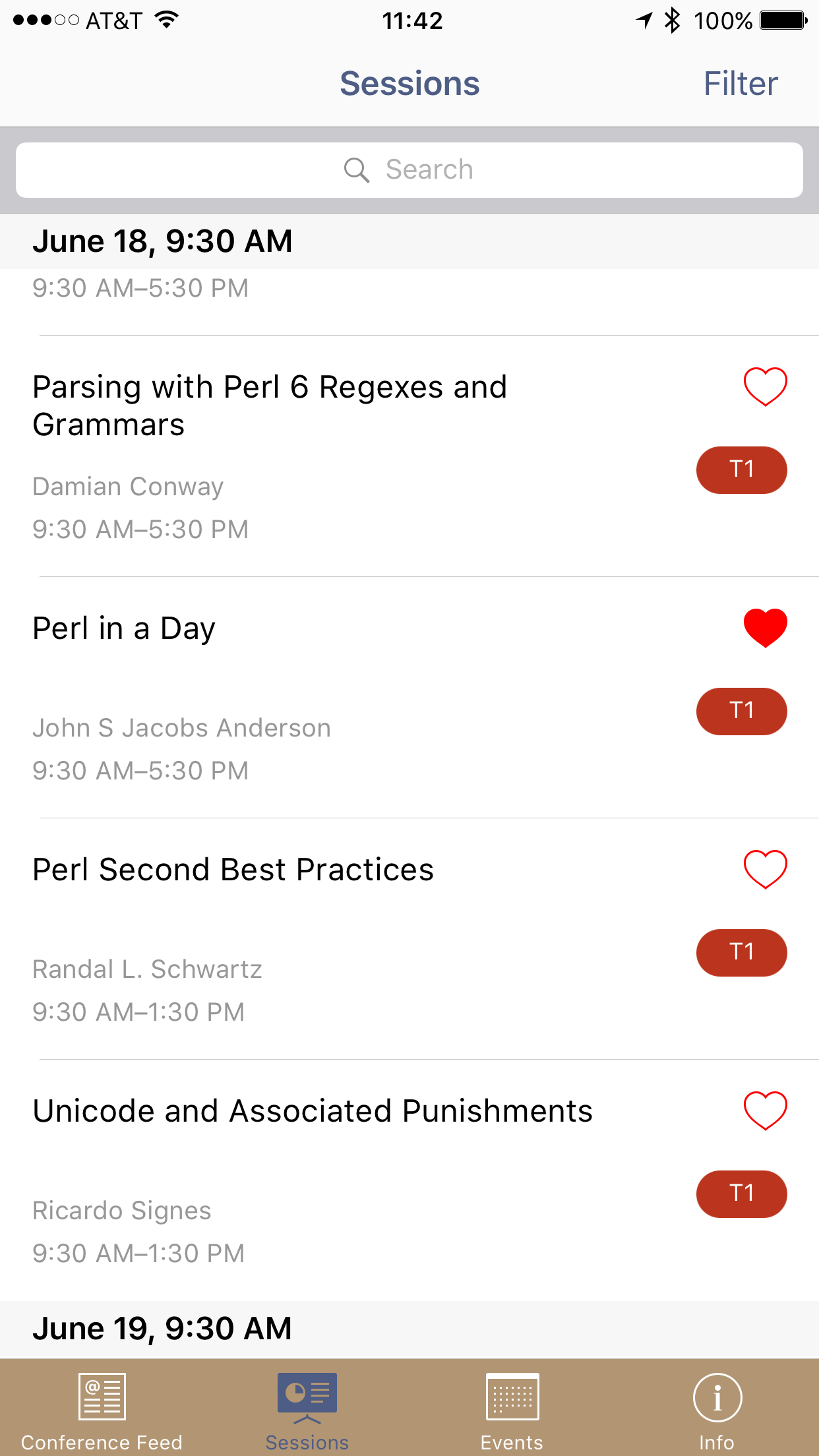It's available now in both the Google Play Store and the iOS app store! If you plan on attending The Perl Conference in D.C., we hope you download our app and let us know what you think. You can even have a chat with @genehack (over a beverage, of course) and let him know your thoughts as well.