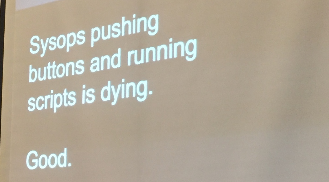 The last talk I caught Saturday was Corey Quinn's absolutely fantastic "Don't You Know Who I Am?! (The Dangers of Celebrity in Tech)" (video), which started out as a comedic assault on the notion of "celebrity" in technical circles, took a pivot through the recent S3 outage and why you probably don't need to worry all that much about it, and ended up tying all that together into a very serious concluding sequence about what's really important in technology: the people.